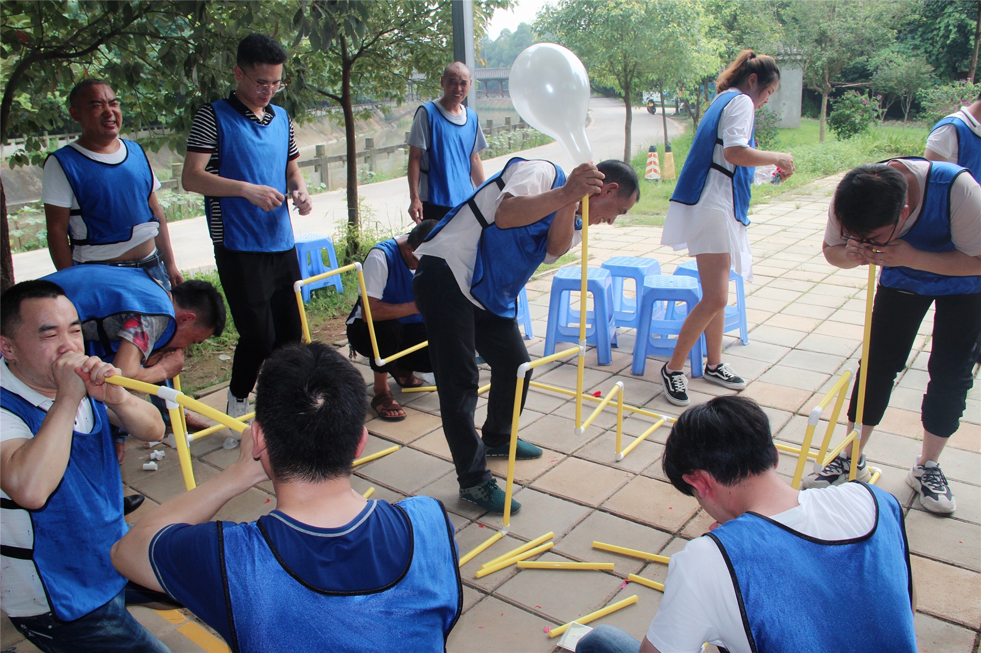 此次拓展训练精心设计了争分夺秒”、“极速60秒”、“呼吸的力量”、“共绘蓝图”四个项目。5组成员分别在各自队长的带领下,团结协作,共同完成了每一项任务。