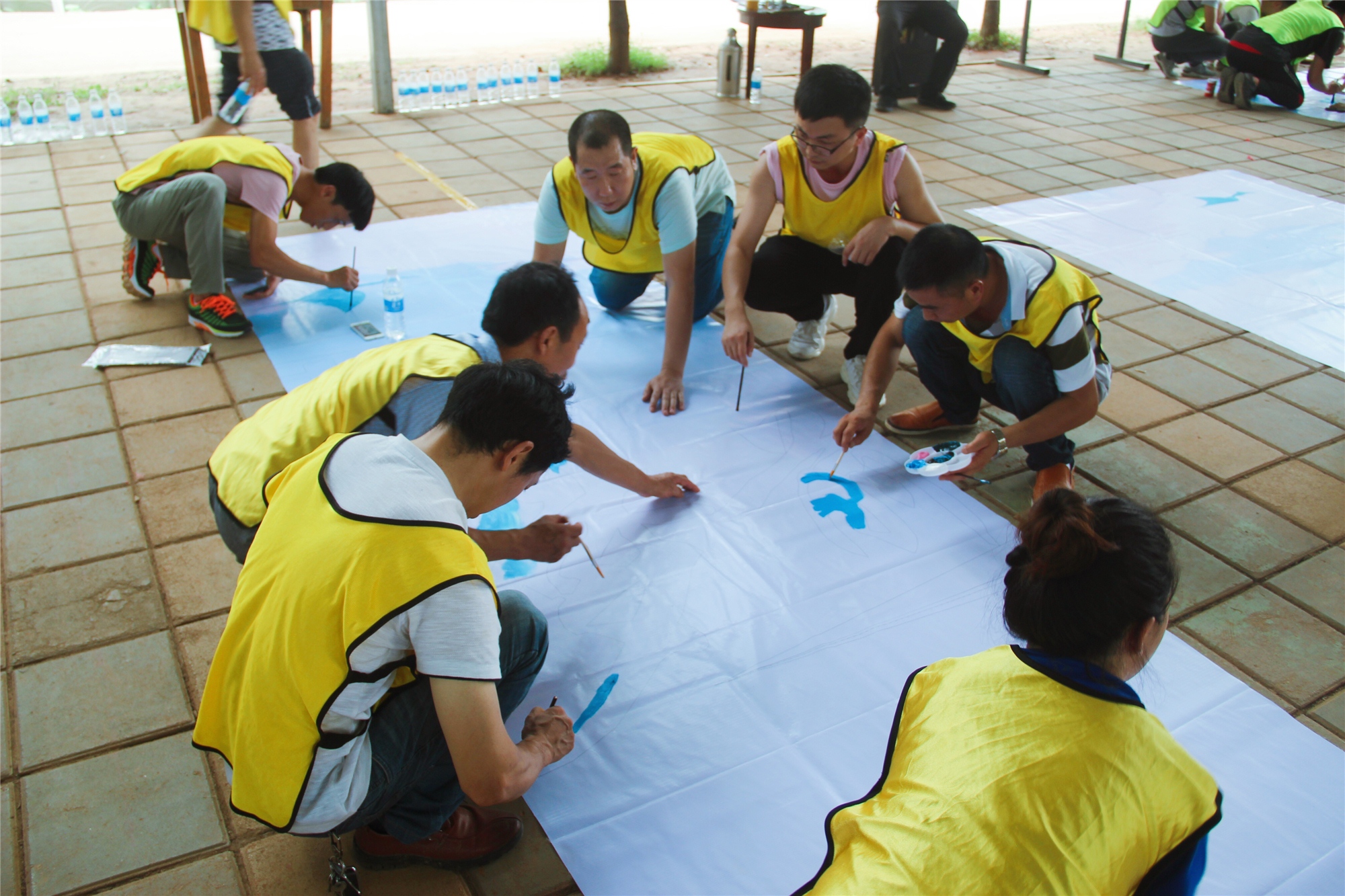 为增强员工之间的交流、打破部门限制、均衡各队伍的战斗力,教练将所有人员按年龄、性别等分成了5组成员结构、综合能力相近的队伍。竞选队长、起队名、制队旗、定口号,各组积极准备、暗中较劲。竞争不是目的,双赢才是最佳的选择。